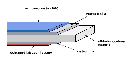 • Dokonalá adheze mezi PVC vrstvou a plechem.